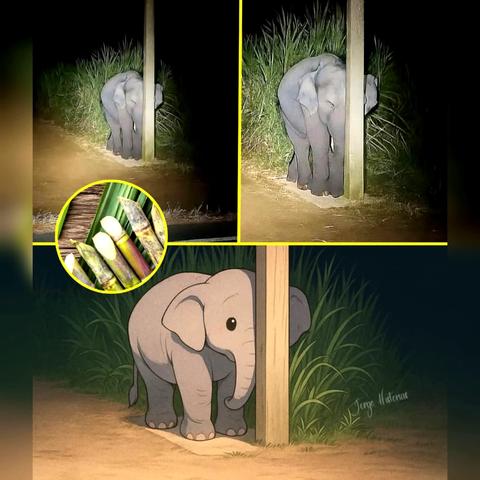 У Чіангмаї, на півночі Таїланду, маленький слоненя вирішив уночі трохи розважитися — він пробрався на сусіднє поле, щоб скуштувати трішки цукрової тростини.