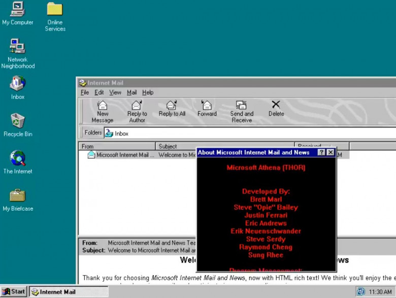 27 марта 2021 года разработчик и исследователь под ником Albacore рассказал в Twitter, что обнаружил ранее неизвестную пасхалку в приложении Internet Mail для Windows 95. Это произошло спустя 25 лет после релиза ОС.