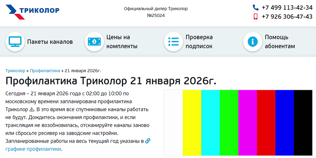 По окончании профилактики для восстановления просмотра телеканалов и продолжения использования сервисов каких-либо действий со стороны клиентов не потребуется.