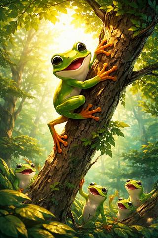 Жила-була маленька жабка, яка одного прекрасного дня вирішила піднятися на дуже високе дерево. Такого ще не робила жодна з її подруг.